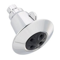 Delta Fluidics Adjustable Showerhead The dual setting shower head offers a water-saving comfort spray and a high-volume spray. The water-saving comfort spray operates at 1.85 gallons per minute, but don't think you're giving anything up in performance because it feels like the standard 2.5 gallons per minute. So you save water and energy. The high-volume spray operates at 2.5 gallons per minute and delivers a drenching spray that covers the entire body, and feels like much more water than expected. The internal engineering guarantees that the shower head will not clog up so you save cleaning time as well. A convenient volume-control lever adjusts the water settings--you decide to save water, and extend the amount of hot water in your water tank, or enjoy a drenching shower. Read More