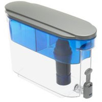 Pur 2 Stage Water Dispenser Keep your water clear of chemicals and odors with this dispenser from PUR. Its advanced filtration system reduces more contaminants (lead, copper, zinc, etc.) than any other pour-through filter. Plus, the dispenser's narrow, sleek build fits neatly in the refrigerator or sink, while handles make it easy to fill and carry. Each filter has a lifespan of about one to two months (or roughly 40 gallons of water). A handy gauge indicates when the filter needs to be replaced. Clean the dispenser with mild soap and a dry towel. Read More | Compare Prices