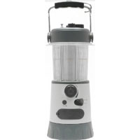 Garrity KP052 Rechargeable 20 LED Crank Lantern This lightweight 20 LED lantern can be charged by hand-cranking or with the AC/DC adapters, it can also run on 3 AA batteries that are included. Ideal for fishing, camping, hunting or around the house. Great for emergencies, power outages as there is no need to search for batteries in the dark with alternative power sources. It also can be used as an AM/FM radio.