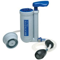 Katadyn Survivor 06 Desalinator At 2.5 pounds, the Katadyn Survivor 06 is the world's smallest hand-operated desalinator and can easily fit into an emergency kit. It removes bacteria, viruses and other contaminants, and can make 1 ounce of drinking water in less than two minutes (nearly 2 pints per hour) with an average pump rate of 40 strokes per minute.