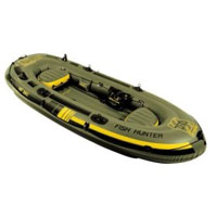 Sevylor 12-foot Fish Hunter Inflatable Boat Well constructed and specifically designed for fisherman and weekend hunting expeditions, the large-sized Sevylor HF360 Fish Hunter inflatable boat provides room for four to six boaters and can be used with a 2.5 horsepower (HP) gas motor at the stern (when used with optional Sevylor Motor Mount). It also can be used with an optional Sevylor 12 Volt motor at the stern or bow of the boat without use of motor mount. The inflatable floor allows the boat to be easily rolled up and ready to go in minutes, and it's easy to store. It includes two inflatable seats, a gear bag, and a battery pouch. Read More | Compare Prices