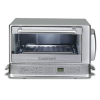 Cuisinart TOB-195 Convection Toaster Oven Bake, broil, toast, defrost, and reheat your favorite foods with one sleek machine: this high-performance 1500 watts convection toaster oven from Cuisinart. Its spacious 0.6-cubic-foot capacity allows for baking a whole chicken, broiling fish for the family, or toasting six slices of bread at one time. It will even accommodate a 12-inch pizza. The multifunctional countertop unit supplies state-of-the-art electronic touchpad controls and four versatile cooking options: pizza/bake, broil, toast, and convection. With its stainless-steel front panels and brushed chrome commercial-style handle, the toaster oven measures 16 by 17-3/4 by 9-5/8 inches and carries a three-year limited warranty. Read More | Compare Prices