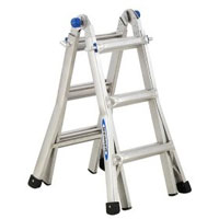 Werner MT-13 Ladder The Werner 13-foot Type 1A 300-pound duty rating telescoping multiladder can convert into a 3- to 5-foot stepladder strong enough to hold two people; a 7- to 11-foot extension ladder, or 1- to 2-foot scaffold. Adjust the height easily with the spring-loaded J locks, and use the set of hinges to separate out the ladder into two stepladders, with just a plank required to use them as scaffolding.