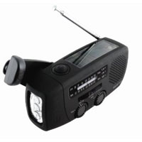 Eton FR150 You’ll always know what’s going on, thanks to the AM, FM and NOAA Weather Band tuners. You can also tune in to the FCC and EAS public alert systems. This, along with the flashlight and cell phone charger, make the FR-150 Microlink one versatile little device. Can be powered from three different sources: 1) From solar power 2) From the built-in rechargeable Ni-MH battery that takes charge from the dynamo crank and from an AC adapter (not included).